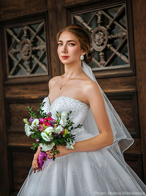 Take the outdoor bridal portrait above. The original photo is okay, but the natural light didn’t fully capture the glamour and elegance of the bride.