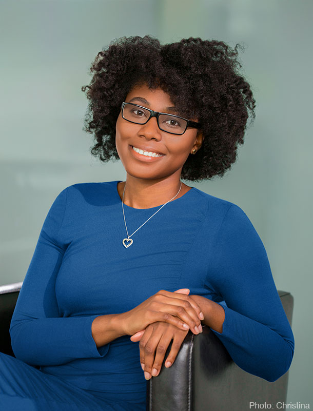 After colour, contrast, and brightness are corrected, skin tone evened, image straightened, and all background distractions removed, the photo becomes cleaner and more professional looking. There are no longer any distractions taking away from the person’s face.