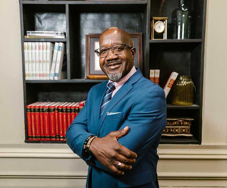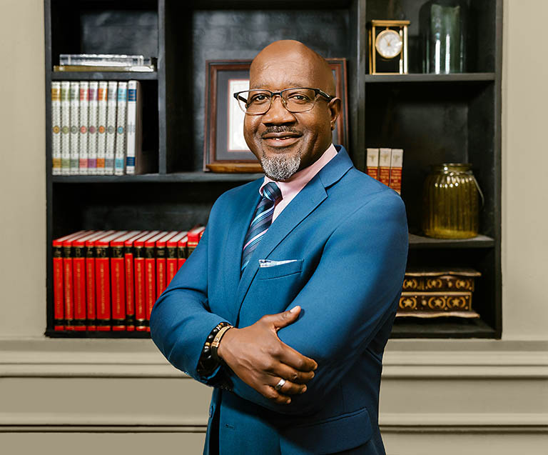 This photo has many small distractions that add up to make the image look messy. But after they’ve been removed, the business portrait looks cleaner and more polished. The retouched photo makes a much better impression.